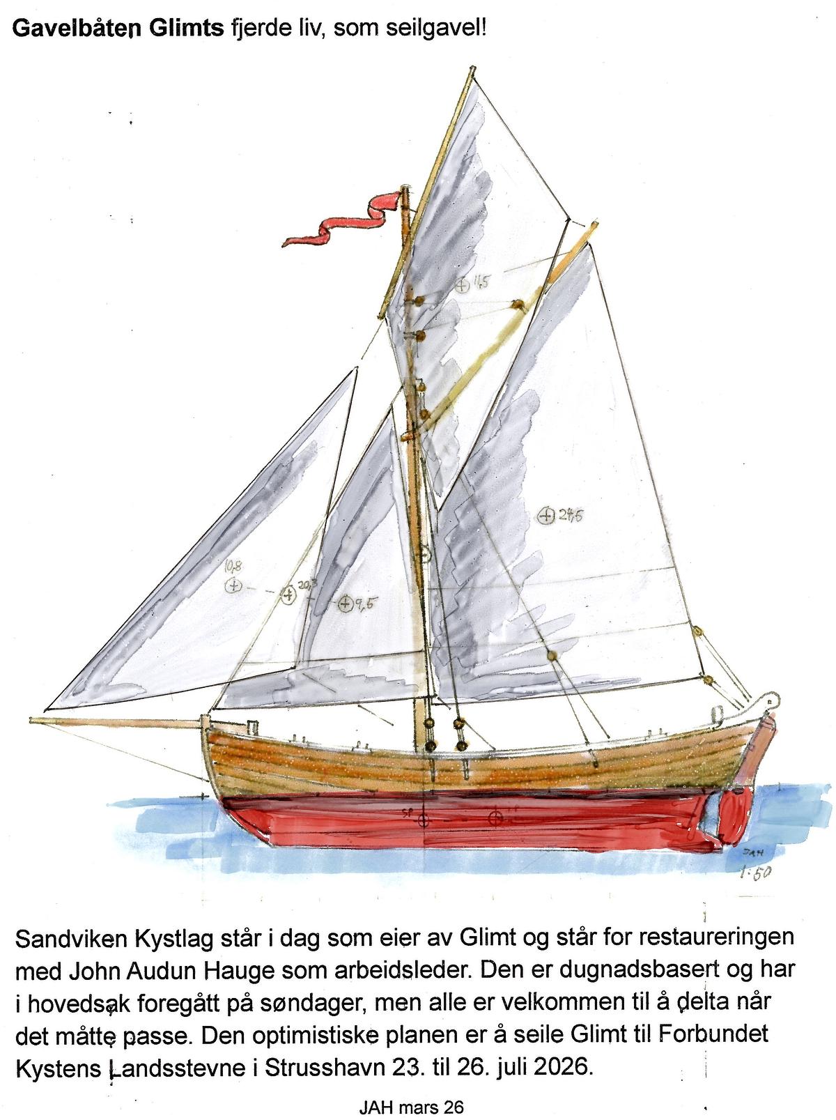 Gavelbåten GLIMT sitt fjerde liv, som seilgavel! Foredrag med John Audun Hauge, onsdag 8.april kl 1900 i felleslokalet i Kystkultursenteret, Sandviksbod 15-17 inngang D, 3. etgLitt om livet, sjølen, båtene men mest om GLIMT:
